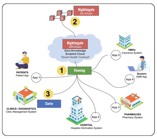 Fleming, NightIngale, and Curie comprise Hippocrades’ advanced solutions and comprehensive API services to address different healthcare needs making systems compliant and interoperable while protecting and securing sensitive personal health records.